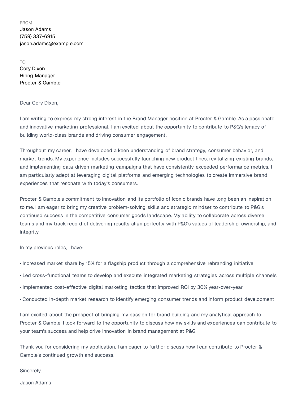 Brand Manager Cover Letter Example