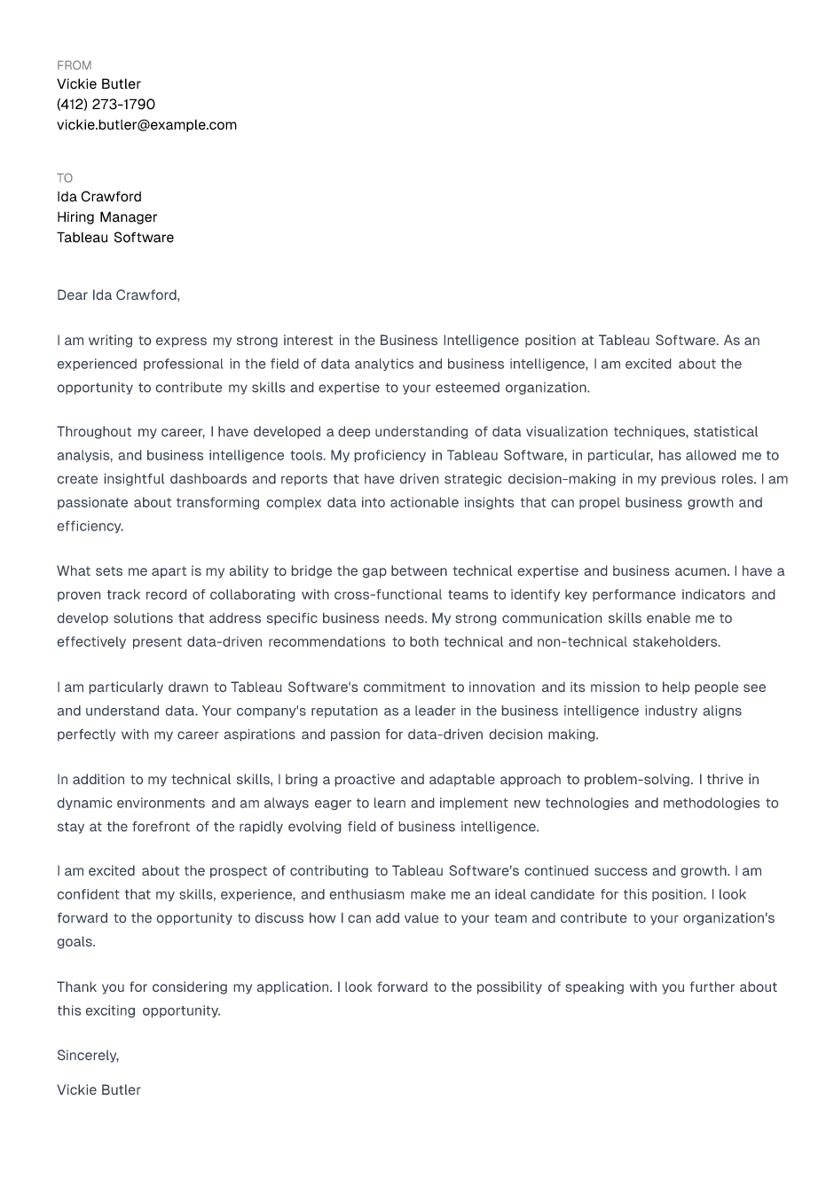 Business Intelligence Cover Letter Example