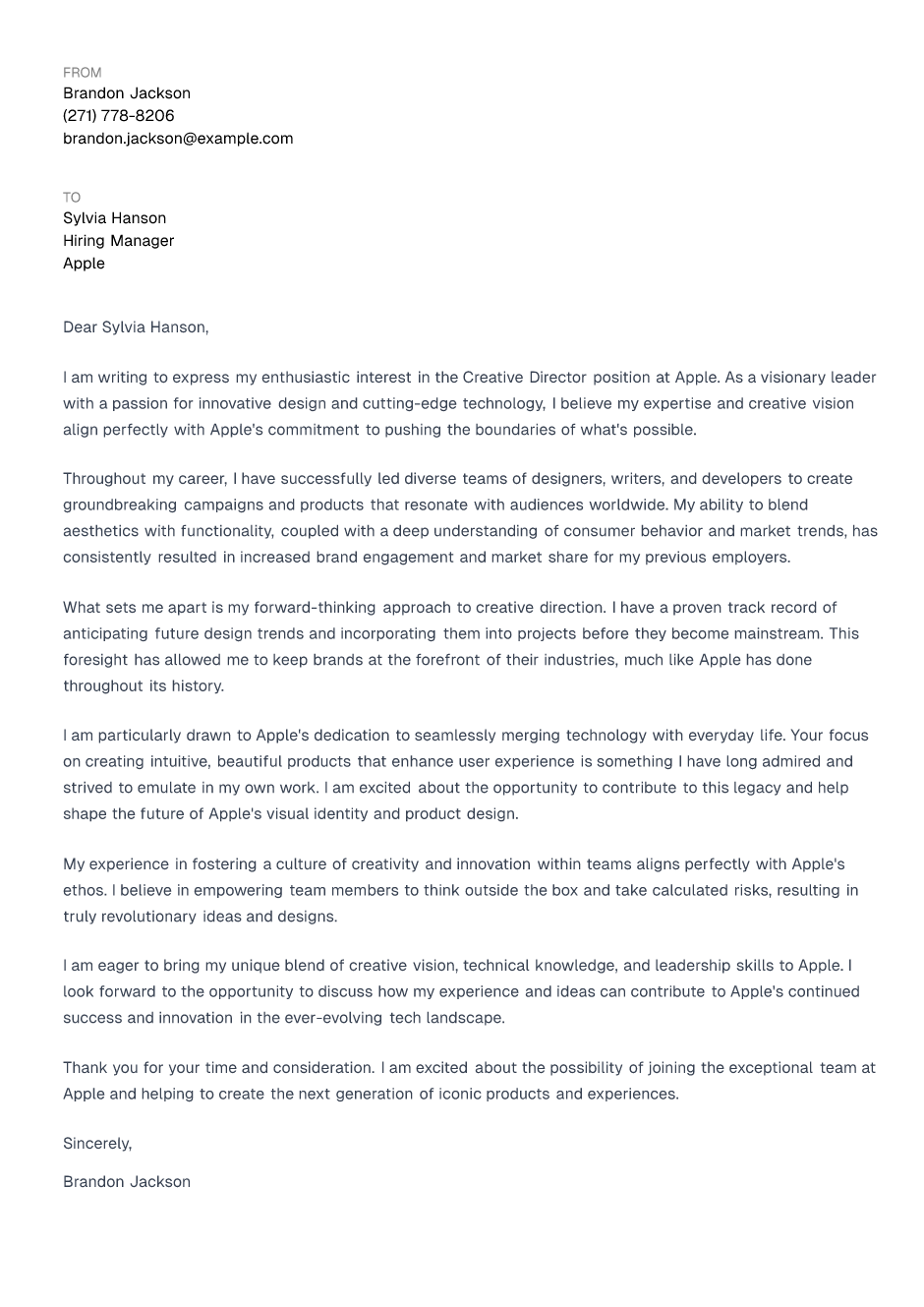 Creative Director Cover Letter Example