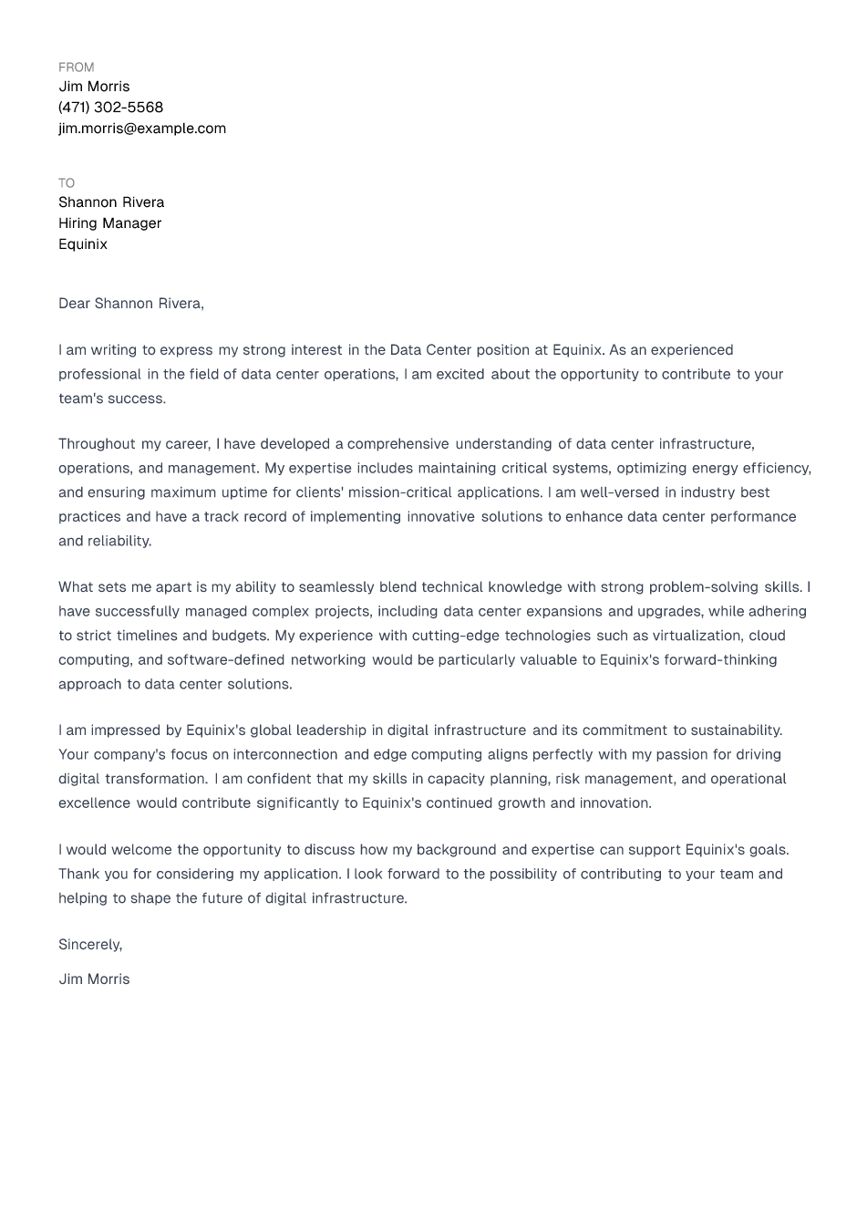 Data Center Cover Letter Example