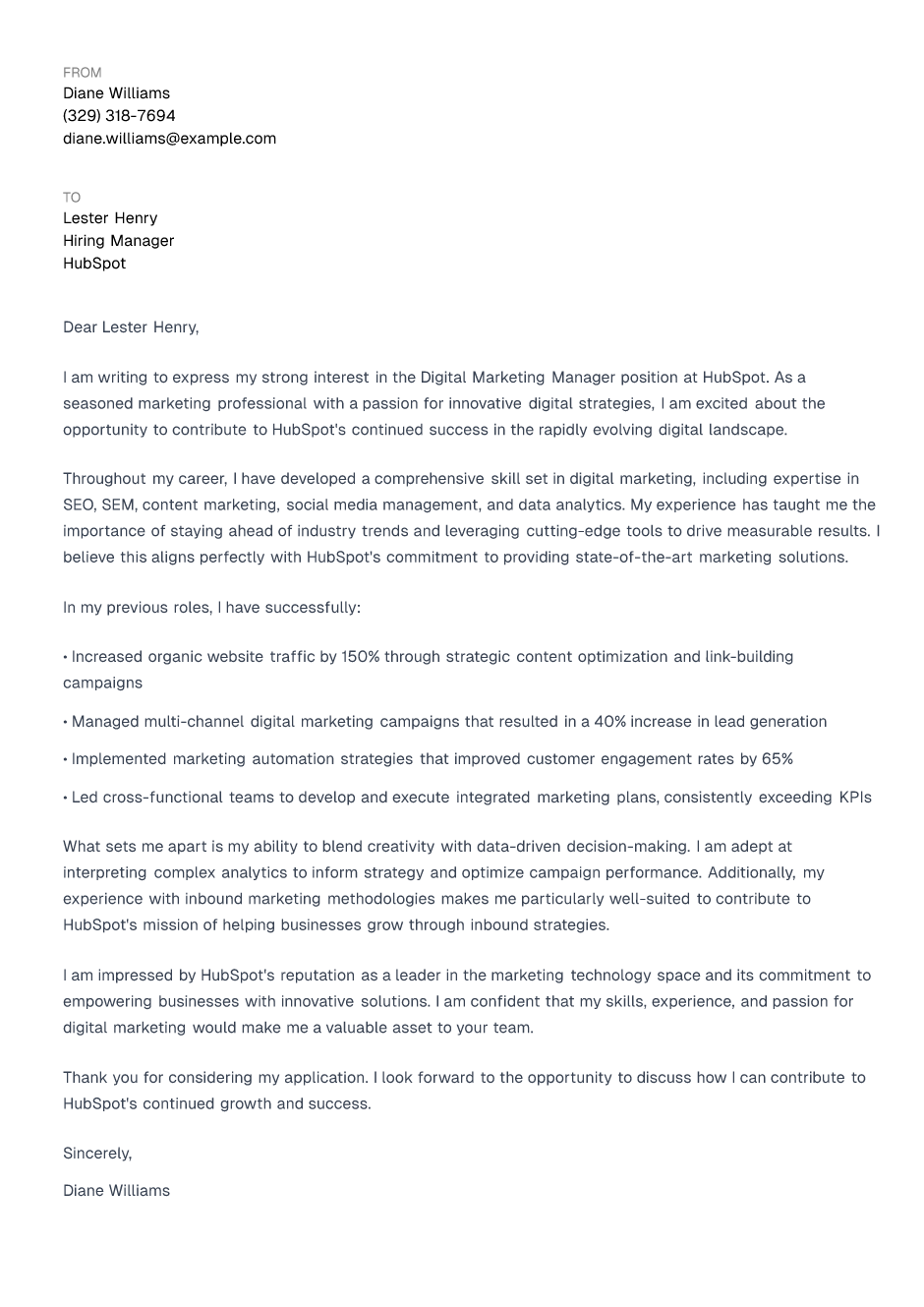 Digital Marketing Manager Cover Letter Example