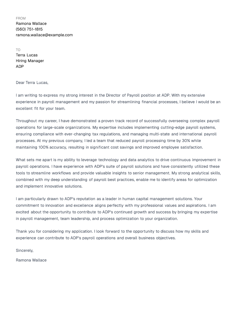 Remember to proofread your entire letter carefully before sending it. A flawless, well-written cover letter will showcase your attention to detail – a crucial skill for a Director of Payroll.