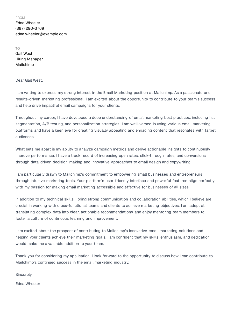 Convey your passion for email marketing and your excitement about the opportunity to contribute to the company. This enthusiasm can set you apart from other candidates and show that you're not just qualified, but also motivated to excel in the role.