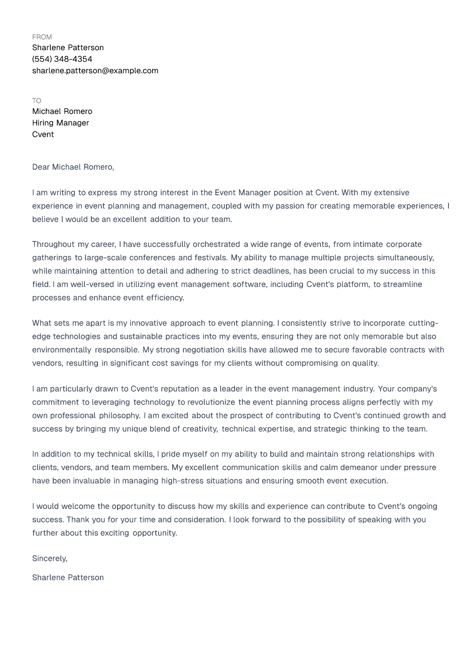 Convey your passion for event management and your excitement about the opportunity to contribute to the company's success. This enthusiasm can set you apart from other candidates and leave a lasting impression on the hiring manager.
