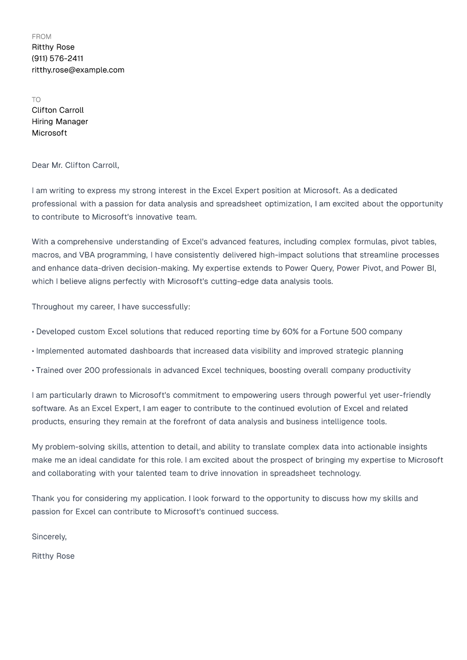 Thank you for considering my application. I look forward to the opportunity to discuss how my skills and passion for Excel can contribute to Microsoft's continued success.
