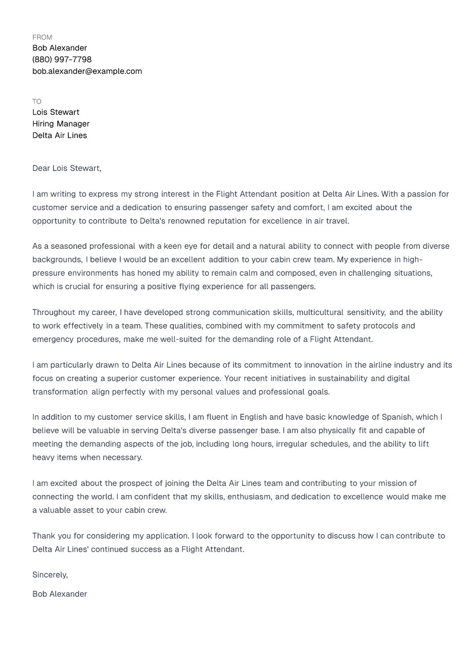 Flight Attendant Cover Letter Example