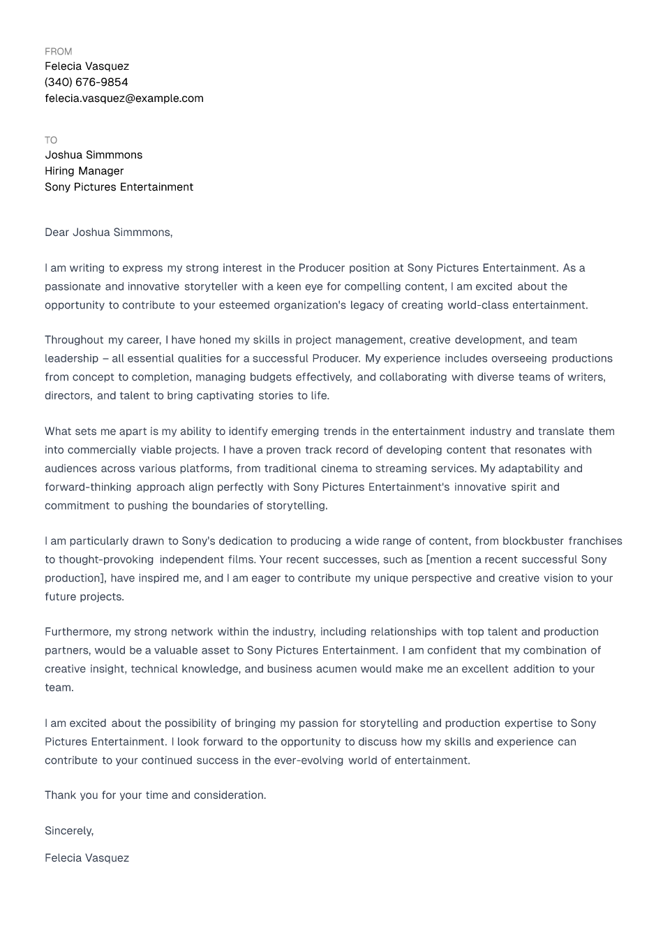Consider incorporating a compelling hook or a brief anecdote that showcases your passion for producing or demonstrates your understanding of the company's values or recent projects. This personal touch can help you stand out from other applicants and create a memorable first impression.