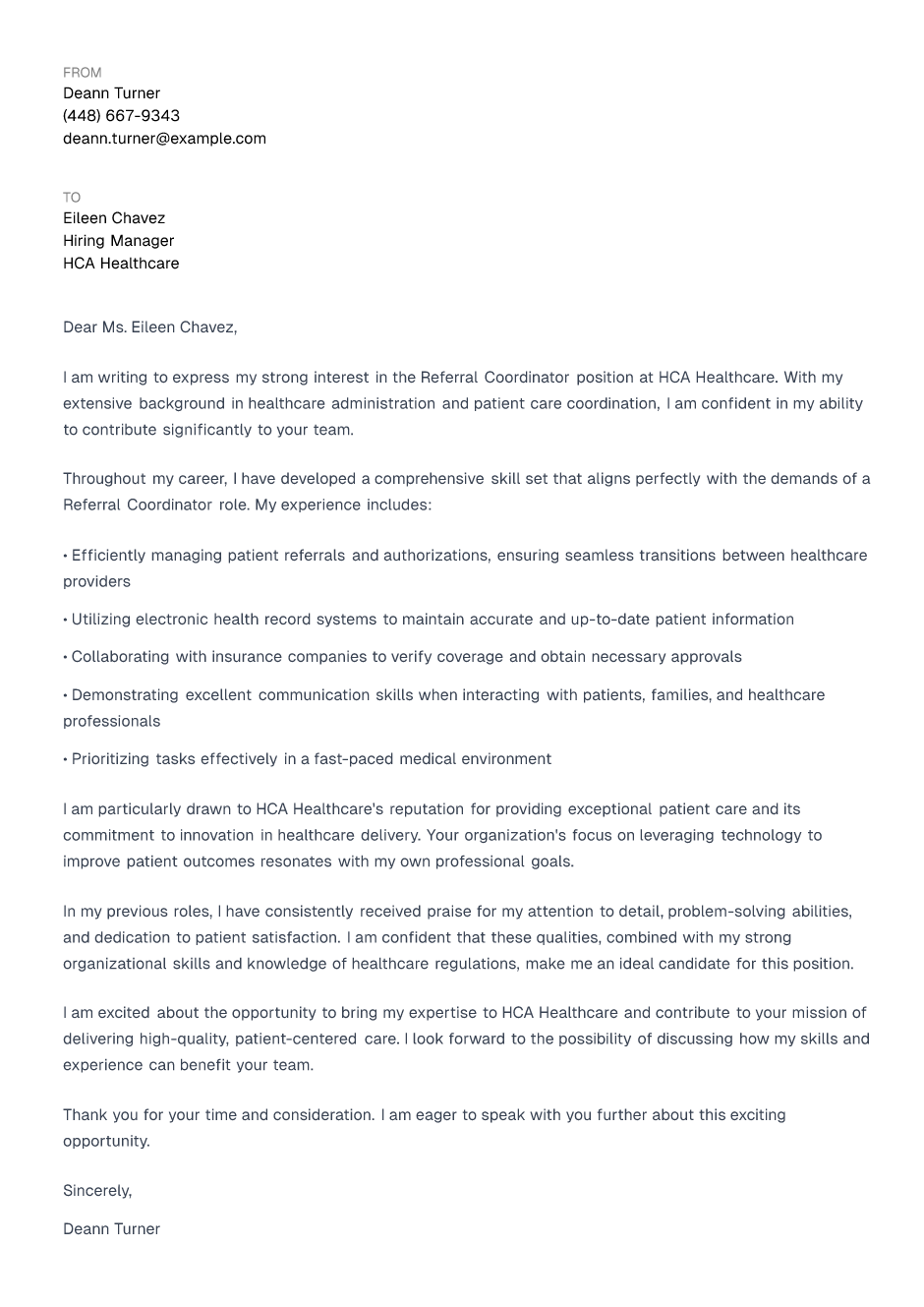Convey your passion for the healthcare field and your eagerness to contribute to the organization's success in the referral coordinator role.