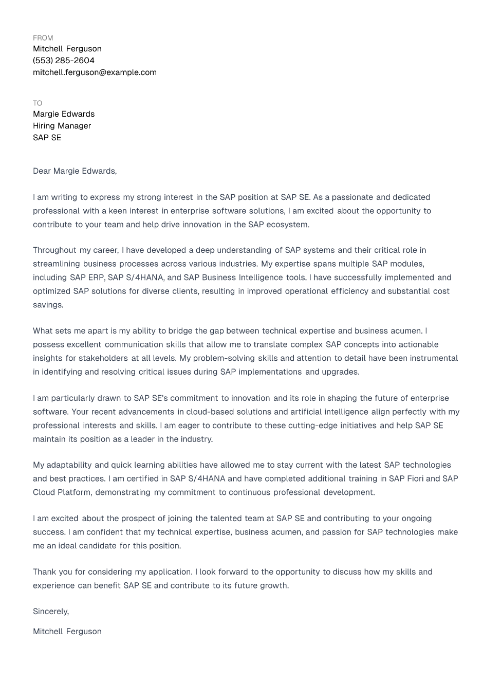 Express your excitement about the opportunity to work with SAP technologies and contribute to the company's goals. Genuine enthusiasm can set you apart from other applicants.