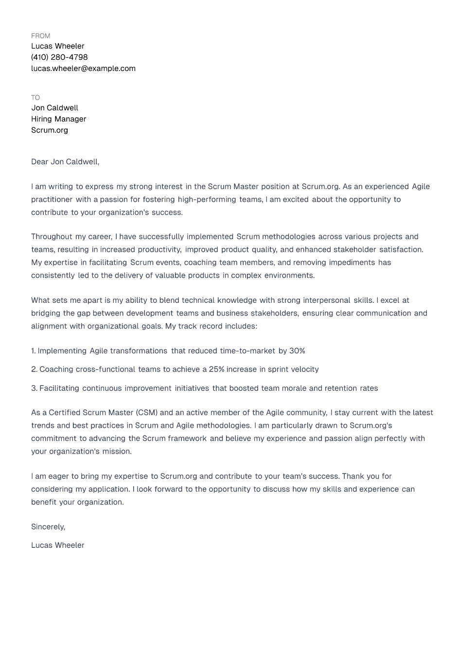 Scrum Master Cover Letter Example