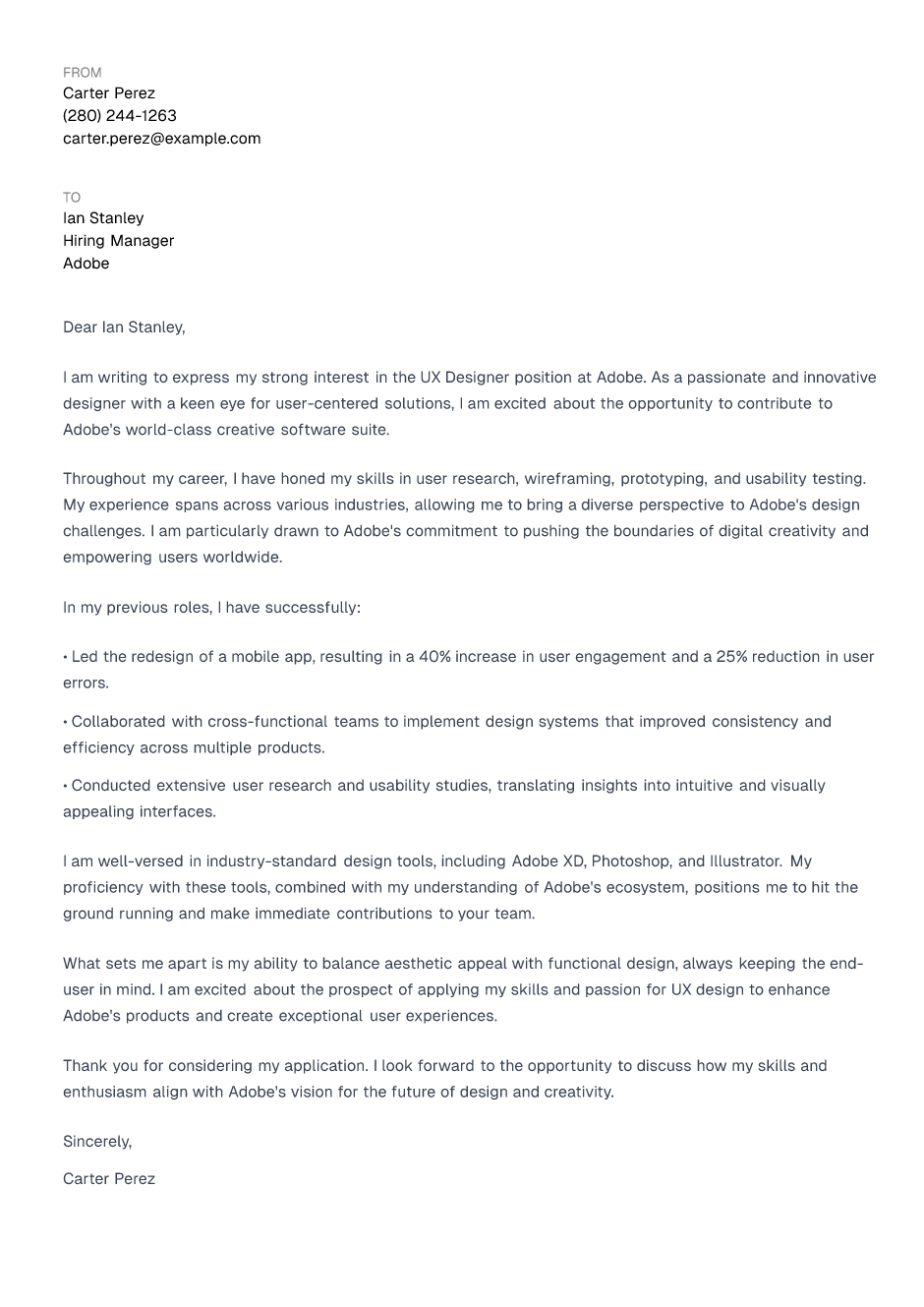 UX Designer Cover Letter Example